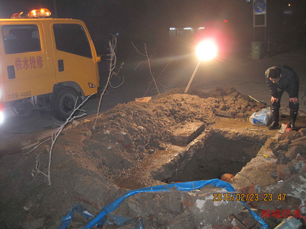 经十几名抢修人员6小时不间断作战,于次日凌晨4点全面完成修复工作,该路段恢复正常供水。