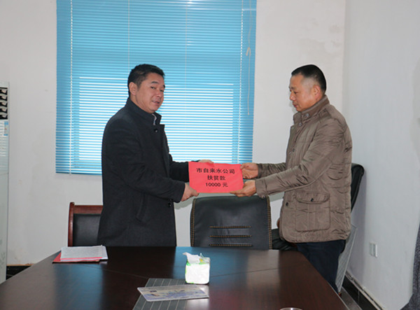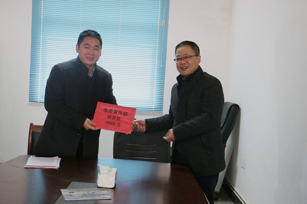 会上,市委宣传部、市自来水公司分别给新联村送上了1万元慰问金。