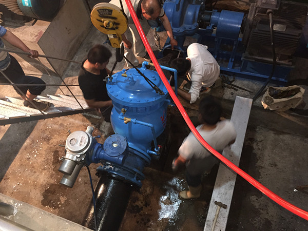 二水厂在供水设备设施的日常检修和维护中,发现一期供水系统中一台90kw水泵出水止回阀,存有回流现象;二期供水系统中一台55kw水泵的出水阀门盘根漏水严重,存有安全隐患。为保障供水安全,不影响城区居民的正常饮用水,采取在夜间低峰供水时段对损坏的供水阀门进行更换。
