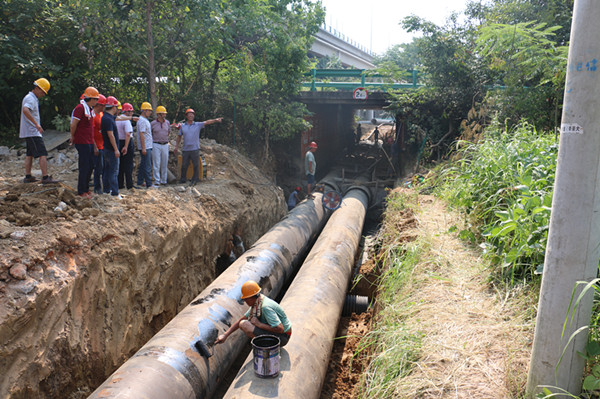 为确保施工安全和管网运行安全,施工方桐城市市政工程安装公司制定了详细的施工方案和安全方案,并经过专家组论证。该段管网采取开挖深埋方式施工,为保障后期管网运行安全,采取套管方式对管网进行了全面保护。