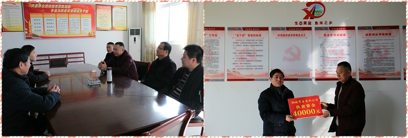 在金神镇黄盆村会议室,安书记一行与黄盆村张书记、王书记展开亲切座谈。会上,安书记详细询问黄盆村2017年脱贫攻坚工作开展情况。王书记就去年脱贫工作和具体脱贫指标完成情况作了汇报,并与张书记一起就市自来水公司长期以来对黄盆村经济发展、基础设施建设以及脱贫攻坚工作的高度关心和支持表示了感谢。会后,安书记代表市自来水公司向黄盆村捐助4万元扶贫款,并嘱咐村两委对扶贫资金要做到专款专用。