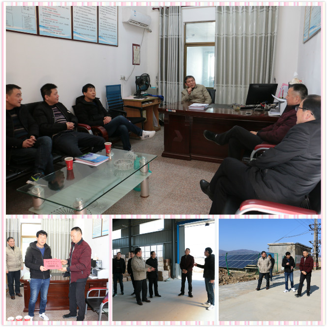 离开黄盆村,安书记一行马不停蹄赶赴新联村,与新联村韩书记、董书记深入交流扶贫工作。韩书记、董书记对公司坚持每月组织党员开展脱贫攻坚大走访工作表示衷心感谢,并介绍了一年来村两委积极落实危房改造工作,建立光伏电站、扶贫车间、就业扶贫驿站等“再造血”扶贫工程情况,同时对下一步工作计划进行了谋划。安书记一行对新联村一年来的工作给予了赞扬,特别是对脱贫攻坚工作给予高度肯定,一致认为村两委思路清晰、工作扎实、求新求变,通过产业建设内生动力,提升“造血功能”,引领群众精准脱贫,是一条有效的脱贫之路。安书记一行对今年村企合力,坚决打赢脱贫攻坚战充满信心,并送上扶贫专项资金1万元。随后,安书记一行实地参观了新联村光伏电站、扶贫车间、就业扶贫驿站。