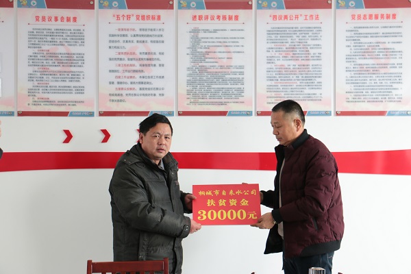2月2日,桐城市自来水公司支部书记、副总经理安志才带领党员干部先后到范岗镇新联村、挂镇村开展扶贫走访慰问活动。此次大走访既是一次年终慰问活动,又是对公司2017年扶贫工作进行一次“回头看”。