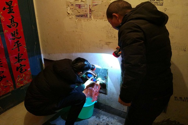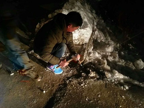 安装公司孙健在毛河大理石厂冰窟窿中维修水表