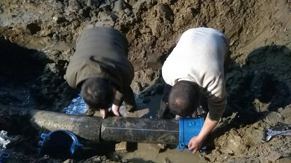 在凛冽寒风中,安装公司抢修班方中、赵决龙两位同志忘却刚从上一抢修现场归来的劳累,主动请缨完成此次抢修任务。他们脱去外套,穿着雨靴,站在冰冷刺骨的泥水中,互相配合着进行施工。室外温度零下3摄氏度,他们弯着身子,挽着袖子,在刺骨的寒风与冰冷的泥水中,调整管道接口,拧紧每个螺丝。直到11点抢修任务完成,恢复正常供水时,他们才发现手脚已被冻僵,失去了知觉。