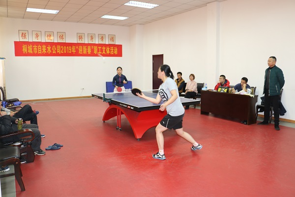 1月22日,市自来水公司2019年“迎新春”职工文体活动在女子组乒乓球比赛中正式拉开帷幕。本次“迎新春”职工文体活动共设置了乒乓球、羽毛球、跳绳、拔河和掼蛋五个比赛项目,来自公司各部门的100多名职工积极报名参加比赛。